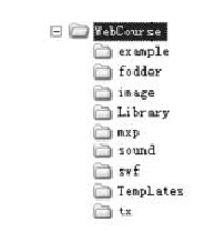 其中,WebCourse為站點(diǎn)的根文件夾,根文件夾下的各個(gè)子文件夾(從上到下)分別用來存放站點(diǎn)的所有實(shí)例、頁面素材、圖像、庫、插件、聲音、Flash、模板和特效代碼文件。