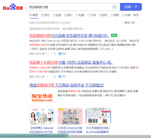 搜索“尿不濕”“紙尿褲”“紙尿褲排行榜”的用戶??梢詳喽?0%以上是嬰兒的父母,這就意味著這三個(gè)詞每年影響135萬(wàn)個(gè)媽媽的購(gòu)買行為。30個(gè)同等指數(shù)的詞,沒你那影響1350萬(wàn)個(gè)媽媽的購(gòu)買行為。當(dāng)媽媽在搜索引擎輸入“紙尿褲排行榜”時(shí),排名第一名的是一篇標(biāo)題為“2014紙尿褲排行榜前十強(qiáng)介紹”的軟文。